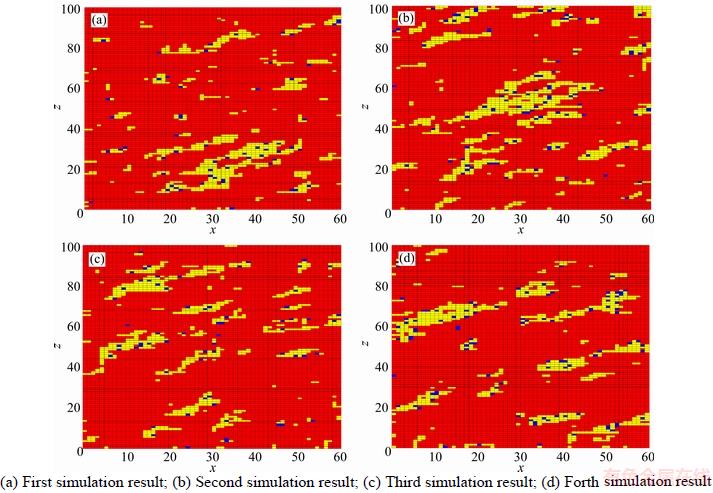 Figure 8 Four realizations of lithology stochastic simulation by three-dimensional Markov chain model with conditional independence assumption: