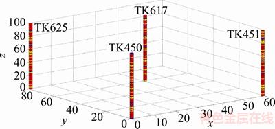 The three-dimensional Markov chain model proposed by LI et al [17] is an extension of the two-dimensional Markov chain model [16] and considers three nearest neighbors in three mutually perpendicular directions to calculate the multi-point conditional probabilities at an unknown location. The directions of three one-dimensional spatial Markov chains can be selected according to the sedimentary process.