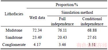 Table 4 Lithofacies proportions in well data and averaged from four simulated realizations by three- dimensional Markov chain