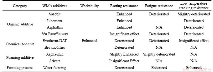 Table 5 Effect of WMA technologies on AR mixture performance (compared to hot AR mixture)