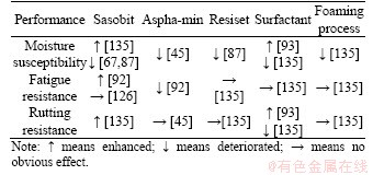 Regarding rutting resistance, WAR with FT-wax exhibited superior performance over hot AR, which is consistent with their rheological properties [78]. A minimal improvement was observed on rutting resistance with addition of surfactant by OLIVEIRA et al [93]. By comparison, the effects of foaming additives and foaming process on rutting resistance were both insignificant [67]. According to available studies, the mechanical properties of WAR mixtures were generally in good consistence with the rheological properties of their binders.