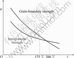 Fig.5 Schematic illustration of variation of grain-boundary strength and intragranular strength with temperature