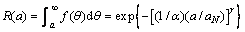 为了计算基于疲劳裂缝长度的复合材料症状可靠度,采用WEIBULL分布拟合公式(3)计算得到复合材料疲劳裂缝长度,建立WEIBULL症状寿命模型[13-14]: