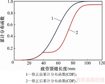 2) 为使修正前后累计分布函数一致,基于贝叶斯修正的概率密度函数需乘以结构在疲劳裂缝长度