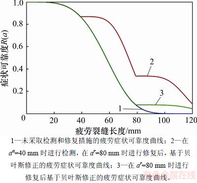 一般地,在结构的整个寿命周期中,为了保证结构安全可靠,对结构构件进行维护是必不可少的,相应地,结构的疲劳症状可靠度也会产生变化。假设当疲劳裂缝长度为