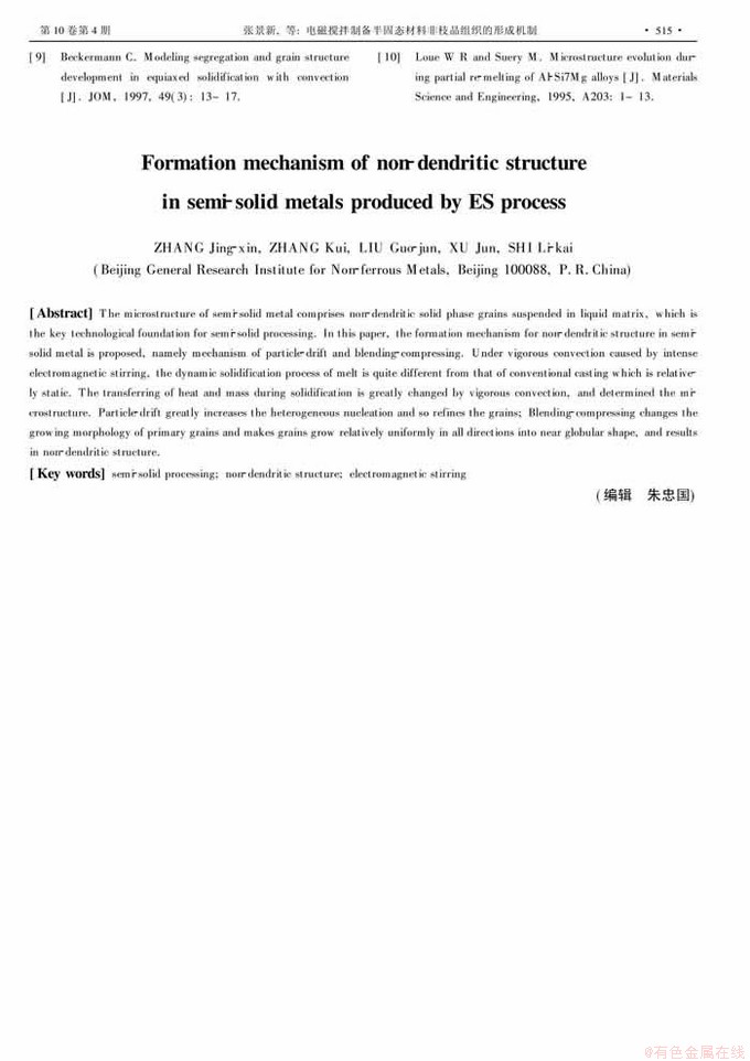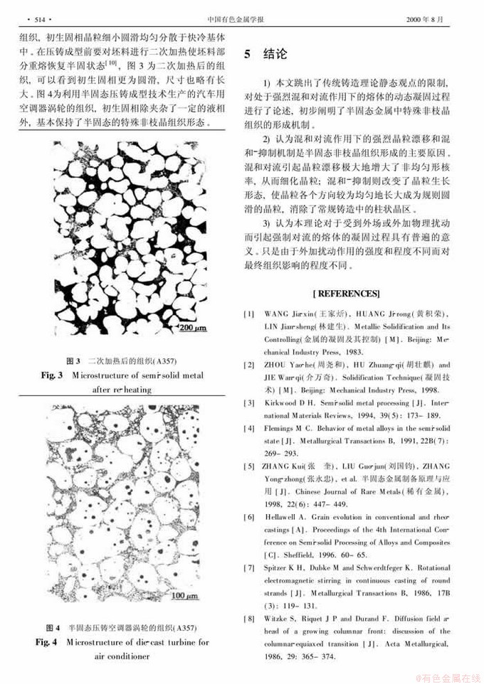 Key words:semi-solid processing; non-dendritic structure; electromagnetic stirring