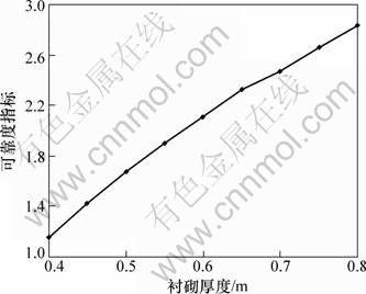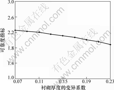 图2 衬砌厚度的变异系数与可靠度指标关系曲线