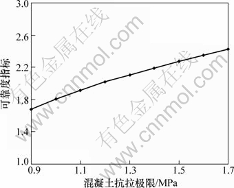 图3 混凝土抗拉极限与可靠度指标关系曲线