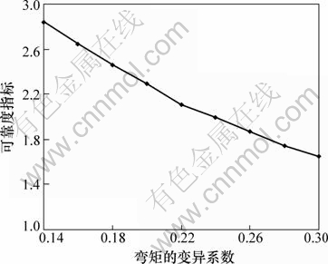 Fig.5 Relationship between variation coefficient of bending moment and reliability index