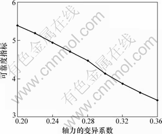 Fig.6 Relationship between variation coefficient axial force and reliability index