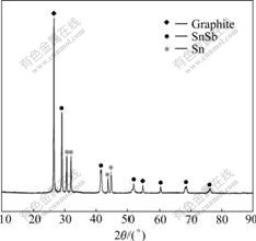 Fig.1 XRD pattern of Sn-SnSb/graphite composite powders