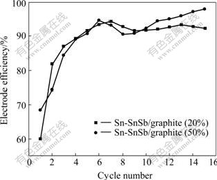 Fig.6 Electrode efficiencies of Sn-SnSb/graphite composite