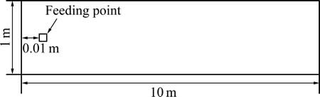 2) 电解质流动区域为10 m×1 m×0.1 m(长× 宽×高),下料区为1 cm正方体区域,俯视图如图1所示;