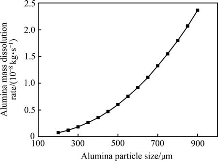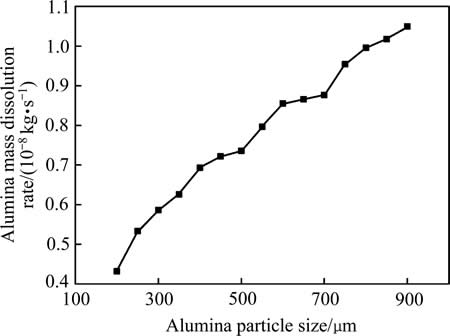 Fig. 9 Relationship between alumina mass dissolution rate and particle size