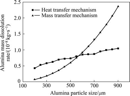 Fig. 2 Relationship between alumina mass dissolution rate and particle size under control of mass transfer mechanism