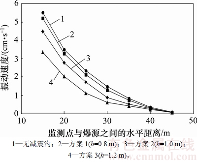 1.1 减震沟对爆破振动速度的影响