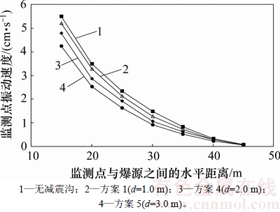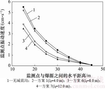 3.3 减震沟与爆源之间的水平距离对减震效果的影响
