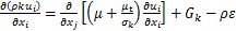 流体流动选择湍流模型中的k-ε标准模型[25-26]: