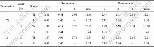 Table 3 Charge population of relaxation/unrelaxation’s TiB2(0001) surface