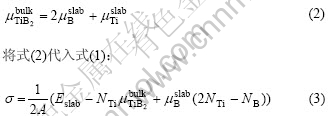 根据计算,?f =?3.251 eV,综合以上各式,可得TiB2(0001)表面能与(