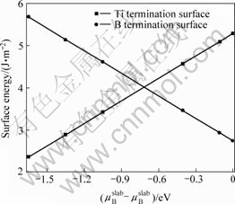 ≤0 eV时,终止于硼原子的表面具有较低的表面能,是较稳定的表面,与此相比,终止于钛原子的表面在更宽的范围(?1.62<