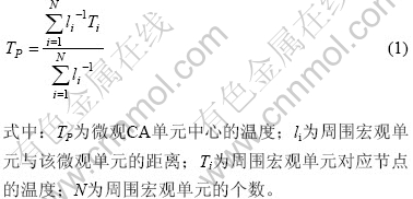 显然,CA单元的温度受其周围的宏观单元温度影响,各CA单元的温度与该单元中心节点到其周围宏观单元的距离li有关,其值可用如下公式计算: