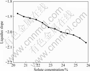 对于Ni-20.835Cr二元合金,液相线斜率(mL)随溶质浓度的变化如图3所示;根据Pandat Demo软件的计算结果,参考文献中的相关数据,确定了其枝晶模拟过程中所需要的相关计算参数,如表1所列。
