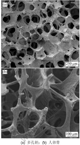 Fig.3 SEM images of porous Ta and Cancellous bone