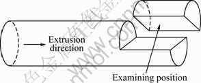 Fig.1 Schematic diagram of examining position for microstructure analysis of as-extruded alloys