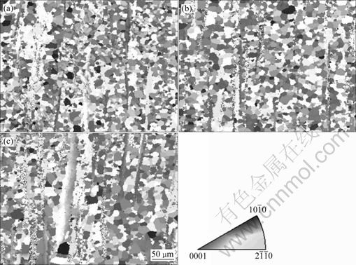 Fig.4 EBSD analysis of alloys with different Zn contents: (a) 0.5Zn%; (b) 1.5%Zn; (c) 2.0%Zn