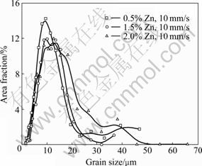 图5 EBSD检测不同Zn含量合金挤压后的晶粒尺寸分布