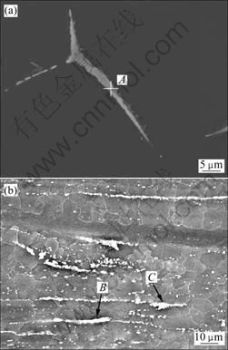Fig.6 Microstructures of precipitated phases: (a) As-cast, 1.5%Zn; (b) As-extruded, 1.5%Zn