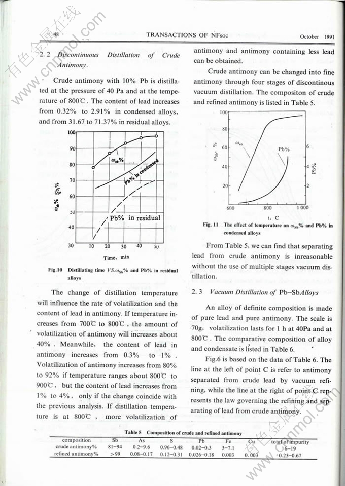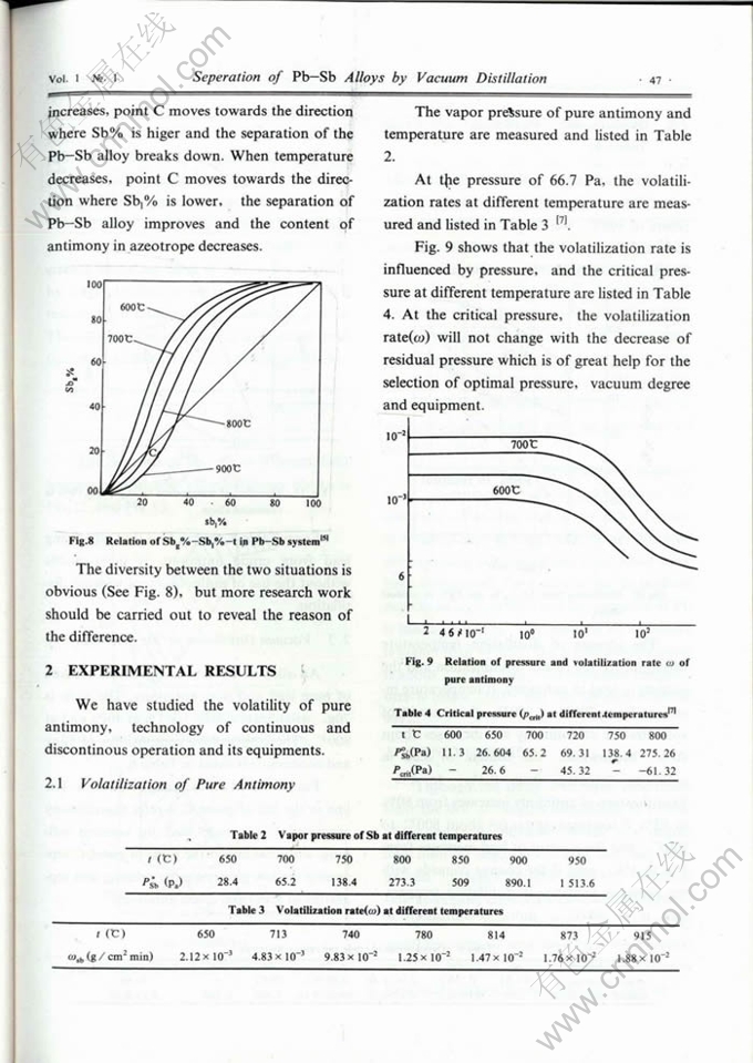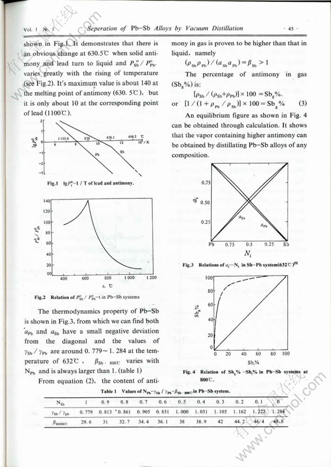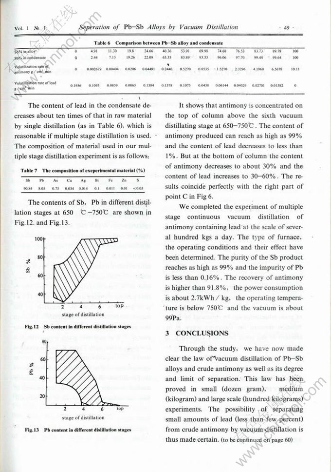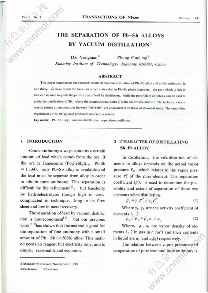 Key words:Pb-Sb alloy, vacuum distillation, eparation coefficient