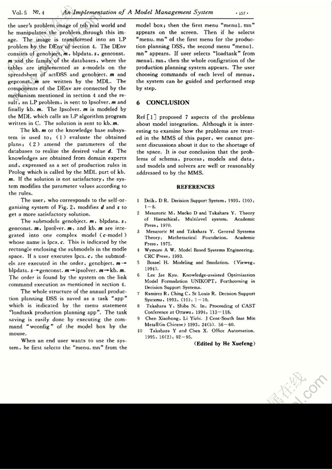 Key words:general systems theory(GST); model management; model description language(MDL); model integration environment(MIE); decision support system(DSS); menu system annual production planning