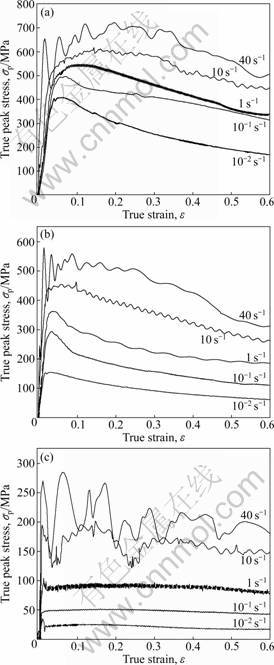 Fig.1 True stress—true strain curves of Ti-24Al-17Nb-0.5Mo alloy at different temperatures and strain rates: (a) 900 ℃; (b) 1 000 ℃; (c) 1 130 ℃