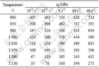 表1 不同变形条件下合金的峰值应力