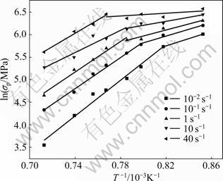 Fig.4 Relationship between lnsp and T -1 at different strain rates