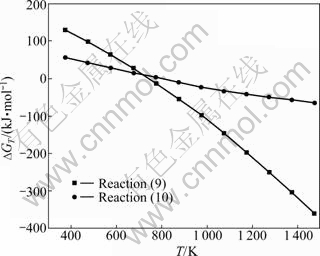 Fig. 6 Relationship between ?GT and T of reactions (9)-(10)