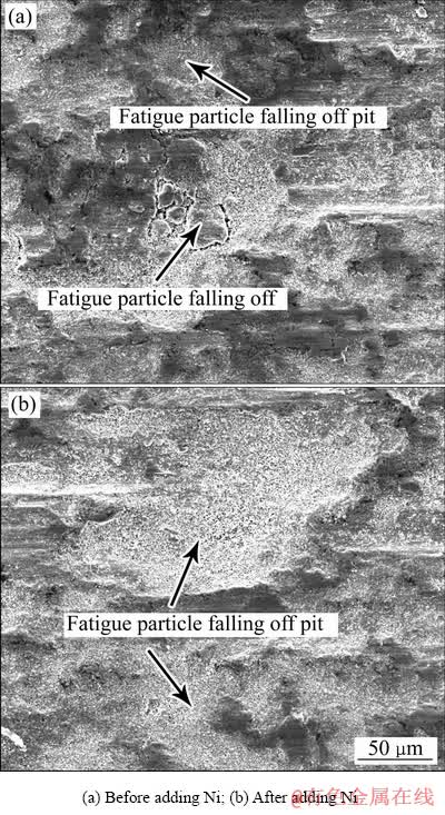Fig. 4 SEM images of middle regions of coatings before(a) and after(b) adding Ni