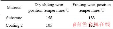 表5 干滑动磨损与微动磨损下距磨损区边缘1 mm位置的温度