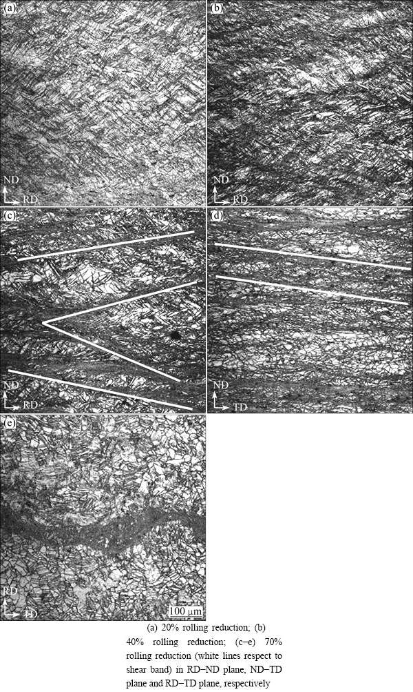 Fig. 2 Optical micrographs of middle layer in rolled samples