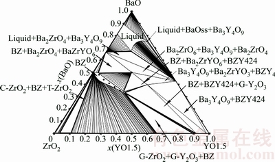 Fig. 1 Isothermal section of BaO-ZrO2-YO1.5 system at 1750 ℃
