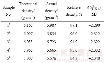 表3 圆片致密度和吉布斯自由能