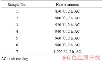 随着航天工业的快速发展,新型高性能飞行器的研制工作受到了人们的高度重视,这要求壳体材料在650~700 ℃下具有良好的瞬时强度和持久的蠕变性能。为了保证材料在严格工作环境下具有可靠的综合性能,宝钛集团联合北京有色金属研究总院在BT25y的基础上,同时加入一定量的Nb和W两种高熔点β稳定元素,并将Mo元素的含量调整到3%左右,研究出一种新型α+β型钛合金BTi-6431S,其名义成分为Ti-6.5Al-3Sn-3Zr-3Mo-3Nb-1W-0.2Si。该合金具有良好的室温强度、加工塑性和焊接性能,并且在高温下显示出更高的瞬时强度以及大载荷持久和蠕变的良好匹配[7-8],可用于650~700 ℃下短时应用的航空航天结构件。热处理是一种改善钛合金力学性能的有效方法。目前,关于热处理对BTi-6431S合金组织和性能影响的研究工作甚少,因此,本文作者对BTi-6431S合金进行单重退火处理,研究其对合金显微组织和力学性能的影响,为该合金热处理制度的制定奠定基础。