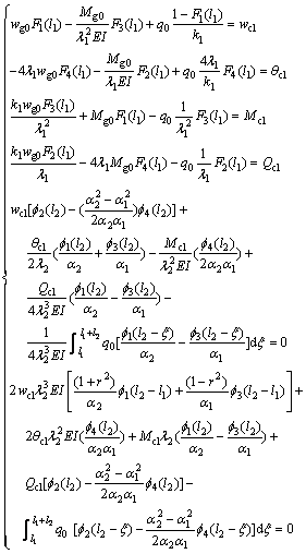 式中:wg0,θg0,Mg0和Qg0分别为基本顶端点(x=0)的挠度、转角、弯矩和剪力。F1(x),F2(x),F3(x)和F4(x)的表达形式为