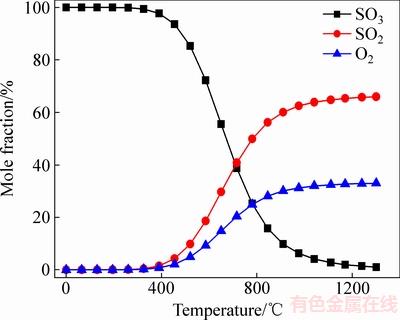 图7 不同熔炼温度下硫酸盐的分解曲线(p=101325 Pa)