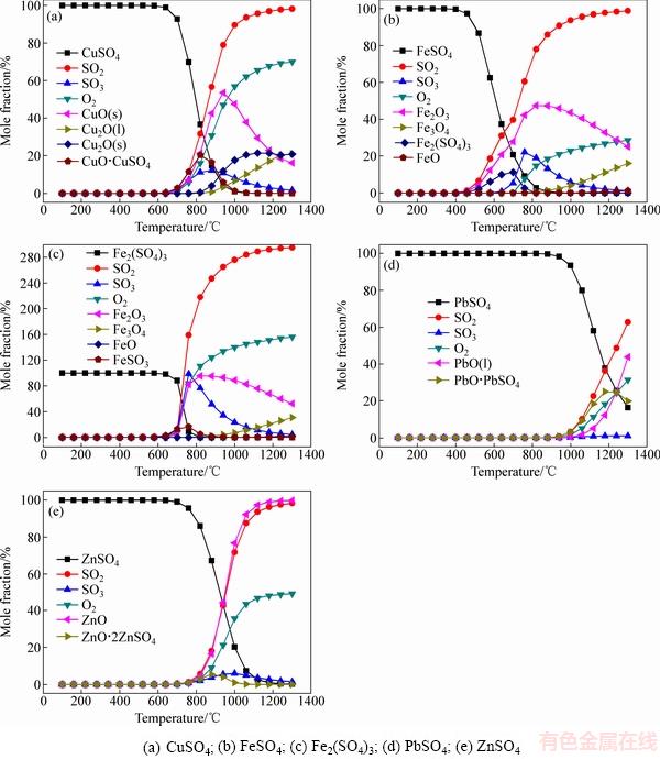 Fig. 7 Decomposition curves of sulfates at different temperatures (p=101325 Pa)
