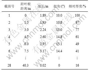 本文采用的应用于GL3A风场的1.50 MW某款大型风力机叶片属于变桨控制型叶片,其安装方式是在每个风轮上安装3个叶片,其设计长度约为40.3 m,设计额定功率为1.50 MW,其基本参数如表1所示。