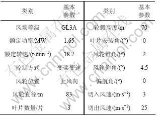 同一款风力机叶片在应用于不同的风力发电机组时,其气动性能也会产生差异,所以,在对具体的某一款风力机叶片进行气动分析时,需要把叶片与整机联系起来考虑。在分析所述风力机叶片的气动性能时,选配的应用机型是某1.65 MW风力发电机组,其基本参数如表2所示。