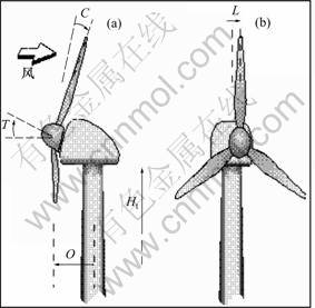 根据表2所示风力发电机组基本参数,在Bladed软件中建立风轮模型,如图2所示。图2中:T为风轮仰角;C为风轮锥角;Ht为轮毂高度;L为叶片横向偏移;O为风轮悬挂距离。
